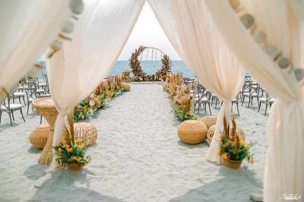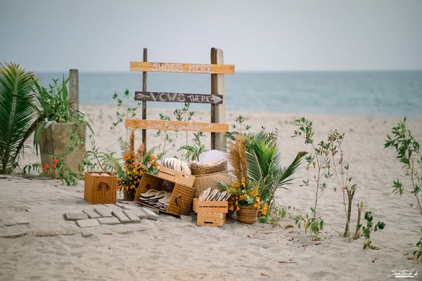 A laid-back coastal charm meets romantic bohemian elegance. Beach weddings, done the #Tantocos way. 🌾✨