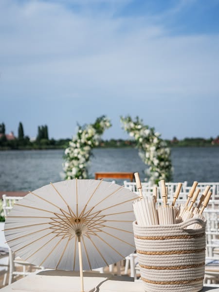 Am creat un decor de poveste, elegant, în nuanțe de alb și verde, pe malul lacului Snagov, pentru un cuplu excepțional!🤍 Aici și-au rostit jurămintele sub cerul senin, înconjurați de natură, lumină și iubire.💚
