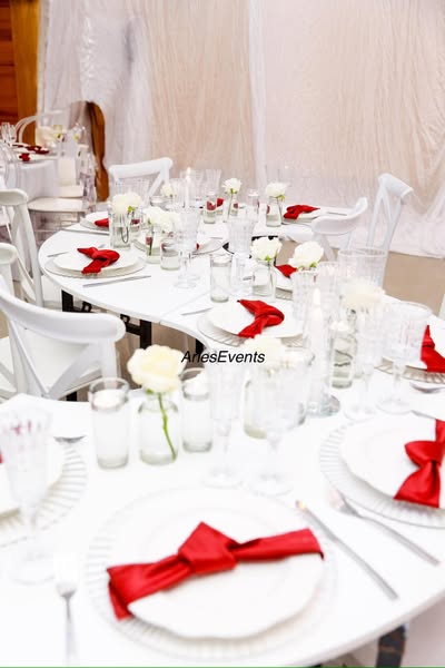 • White Rectangle Tables: Clean and classic, perfect for an elegant layout.