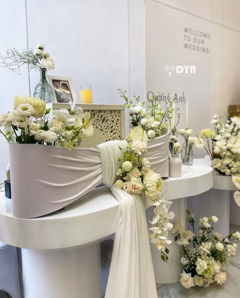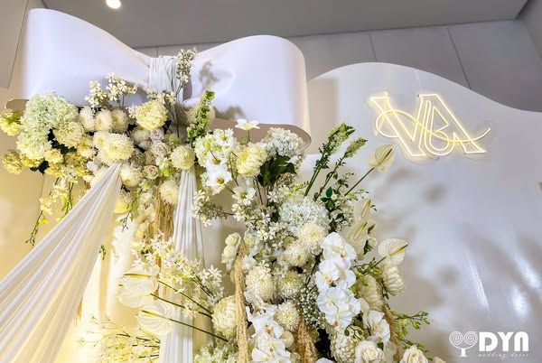 Không chỉ đơn giản là trang trí, DYN mong muốn mang đến một giá trị sâu sắc hơn – đó là sự khởi đầu mới, nơi mọi thứ trở nên thuần khiết, tươi đẹp như chính những bông hoa trắng đang nở rộ. Từng nhành hoa, từng dải lụa mềm mại đều được team chăm chút tỉ mỉ, để mỗi người bước vào không gian này đều cảm nhận được tình yêu chân thành và sự kết nối bền chặt giữa cô dâu, chú rể.