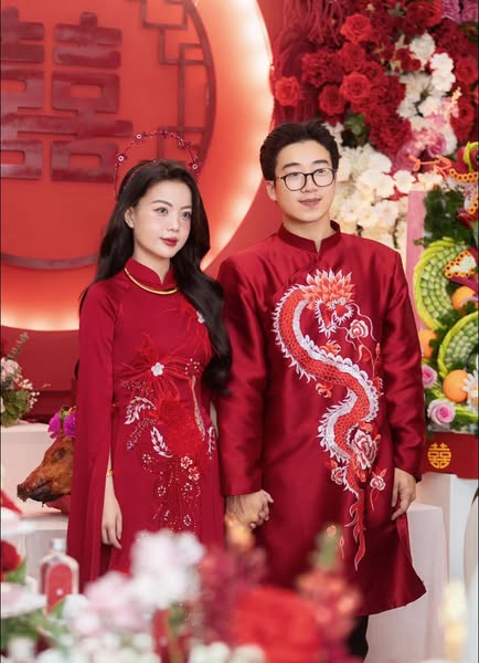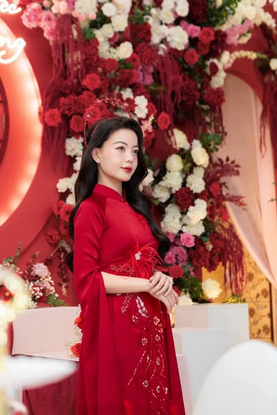 Với concept 𝑯𝒚̉ 𝒔𝒂̆́𝒄, ngoài sự nổi bật của sắc đỏ rực rỡ thì việc khéo léo kết hợp cùng sắc trắng tinh khôi và hồng phấn nhẹ nhàng, cùng biểu tượng song hỷ đầy ý nghĩa đã tạo nên một tổng thể hài hòa, đầy quyến rũ.