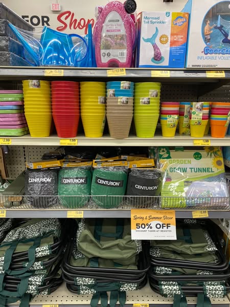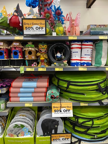 Duarte Grocery outlet has 50% off Spring and Summer Decor. These pictures shows what we currently have for 50% off as of 8-26-2025. Pool toys, yard decor, Beach items, Tiki Torches, Garden supply, BBQ acc and more. While supplies last! come in now and Take advantage.
