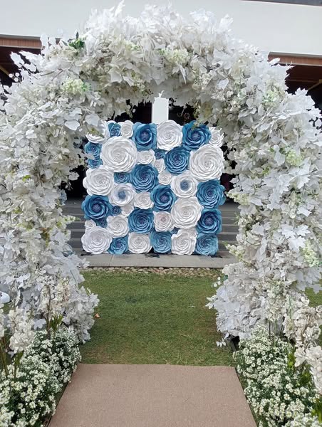搜索关键词 paper flower wall, wedding decoration, blue wedding theme, elegant wedding, custom flower wall, bride reveal, wedding backdrop, manila weddings, unforgettable wedding, blue motif wedding优势 Elegant Wedding Entrance,Customizable Designs,Creates a Breathtaking Moment