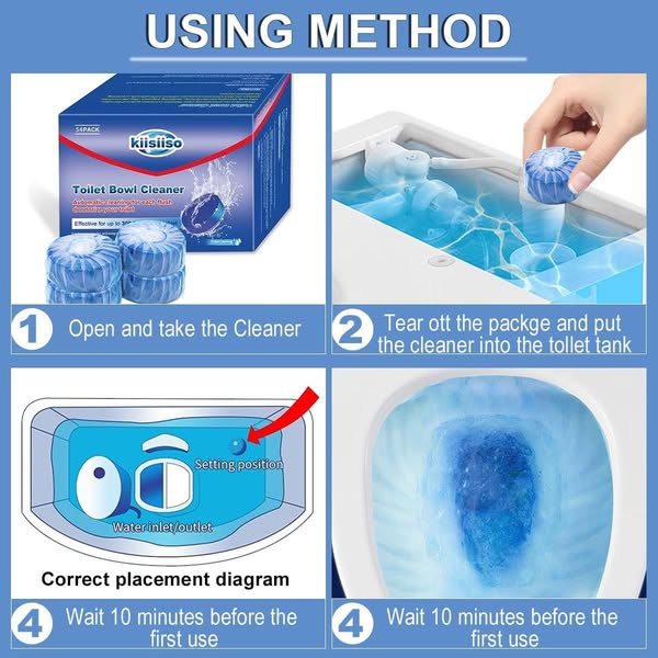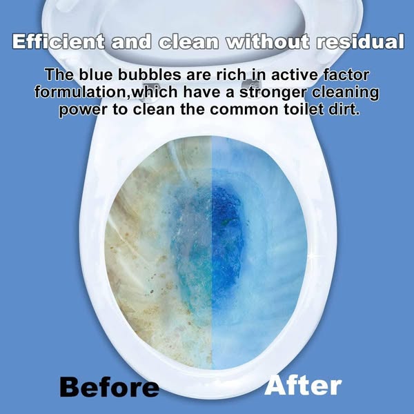 Simplemente coloca una burbuja azul de limpiador de inodoro directamente en el tanque del inodoro y luego hará que el inodoro se refresque bajo cada cepillado. El limpiador de inodoro ahorra tiempo y protege tu salud