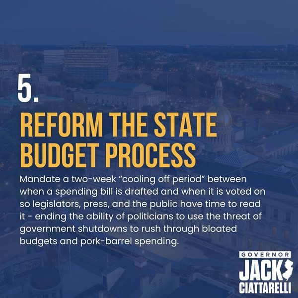 New Jerseyans are among the most taxed people in the country. It's time our state government works for us. That happens when I'm Governor!