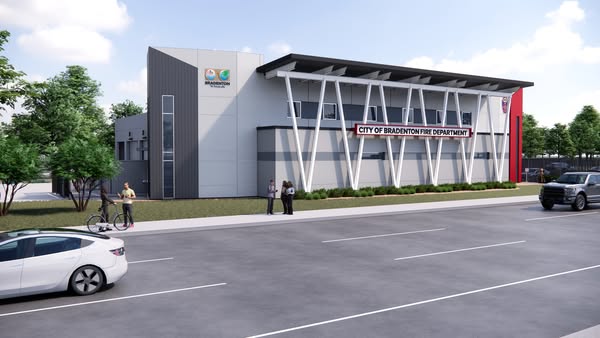 Along Manatee Ave, construction continues on the new Bradenton Fire Station No. 2.