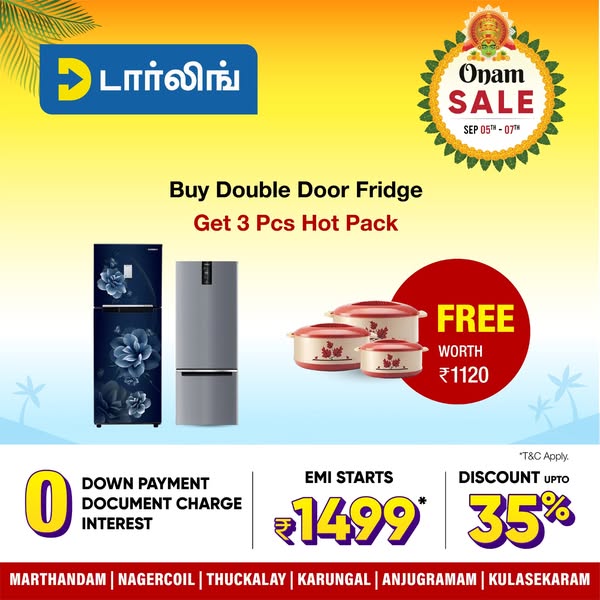 Bring home freshness with EMI from ₹994 + FREE 3L cooker worth ₹1250. Limited time Onam deal – grab yours now!