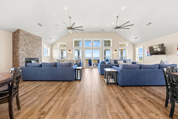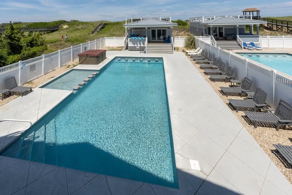 An oceanfront estate designed for the ultimate beach getaway, this home has 23 bedroom suites and four levels of living space. You'll enjoy a private beach access, a massive private pool with a sun deck, and a cabana rooftop hot tub with breathtaking ocean views. Experience endless entertainment with a theater room, game room, and plenty of space for large groups to gather. Stunning views, top-tier amenities, and a prime location make this a perfect Outer Banks vacation home.