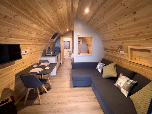 Relax in the cosy comfort of our Castle Pods, with a peaceful bed area designed for a restful night.