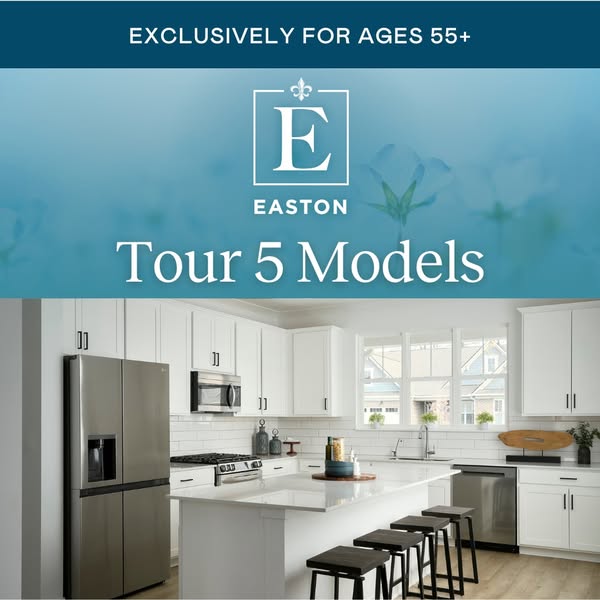 🏡Easton is our latest Active Adult community in Avon, offering brand-new, 🌟low maintenance🌟 single-story homes with future amenities including swimming pools, the Nottingham Clubhouse, trails, pickleball courts and more!