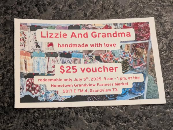 🧵 $25 voucher for hand-sewn items from LizzieAndGrandma