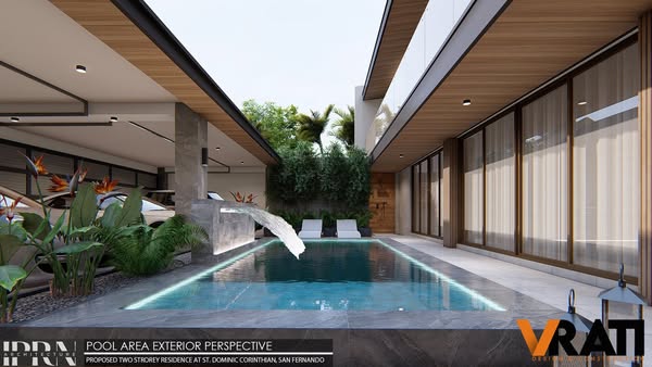 𝘛𝘩𝘦 𝘱𝘳𝘰𝘫𝘦𝘤𝘵 𝘧𝘦𝘢𝘵𝘶𝘳𝘦𝘴 𝘢 𝘮𝘰𝘥𝘦𝘳𝘯 𝘵𝘳𝘰𝘱𝘪𝘤𝘢𝘭 𝘵𝘸𝘰-𝘴𝘵𝘰𝘳𝘦𝘺 𝘳𝘦𝘴𝘪𝘥𝘦𝘯𝘵𝘪𝘢𝘭 𝘷𝘪𝘭𝘭𝘢 𝘸𝘪𝘵𝘩 𝘢𝘯 𝘦𝘮𝘱𝘩𝘢𝘴𝘪𝘴 𝘰𝘯 𝘤𝘭𝘦𝘢𝘯 𝘭𝘪𝘯𝘦𝘴, 𝘯𝘢𝘵𝘶𝘳𝘢𝘭 𝘮𝘢𝘵𝘦𝘳𝘪𝘢𝘭𝘴, 𝘢𝘯𝘥 𝘢𝘯 𝘰𝘱𝘦𝘯, 𝘢𝘪𝘳𝘺 𝘢𝘵𝘮𝘰𝘴𝘱𝘩𝘦𝘳𝘦. 𝘛𝘩𝘦 𝘦𝘹𝘵𝘦𝘳𝘪𝘰𝘳 𝘪𝘯𝘤𝘰𝘳𝘱𝘰𝘳𝘢𝘵𝘦𝘴 𝘸𝘰𝘰𝘥 𝘱𝘢𝘯𝘦𝘭𝘪𝘯𝘨, 𝘴𝘭𝘦𝘦𝘬 𝘨𝘭𝘢𝘴𝘴 𝘳𝘢𝘪𝘭𝘪𝘯𝘨𝘴, 𝘢𝘯𝘥 𝘭𝘢𝘳𝘨𝘦 𝘸𝘪𝘯𝘥𝘰𝘸𝘴, 𝘤𝘳𝘦𝘢𝘵𝘪𝘯𝘨 𝘢 𝘴𝘰𝘱𝘩𝘪𝘴𝘵𝘪𝘤𝘢𝘵𝘦𝘥 𝘢𝘯𝘥 𝘮𝘪𝘯𝘪𝘮𝘢𝘭𝘪𝘴𝘵 𝘭𝘰𝘰𝘬. 𝘛𝘩𝘦 𝘴𝘦𝘢𝘮𝘭𝘦𝘴𝘴 𝘪𝘯𝘵𝘦𝘨𝘳𝘢𝘵𝘪𝘰𝘯 𝘰𝘧 𝘭𝘶𝘴𝘩 𝘨𝘳𝘦𝘦𝘯𝘦𝘳𝘺 𝘴𝘶𝘳𝘳𝘰𝘶𝘯𝘥𝘪𝘯𝘨 𝘵𝘩𝘦 𝘴𝘵𝘳𝘶𝘤𝘵𝘶𝘳𝘦 𝘦𝘯𝘩𝘢𝘯𝘤𝘦𝘴 𝘵𝘩𝘦 𝘯𝘢𝘵𝘶𝘳𝘢𝘭 𝘢𝘦𝘴𝘵𝘩𝘦𝘵𝘪𝘤, 𝘢𝘥𝘥𝘪𝘯𝘨 𝘷𝘪𝘣𝘳𝘢𝘯𝘤𝘺 𝘵𝘰 𝘵𝘩𝘦 𝘰𝘷𝘦𝘳𝘢𝘭𝘭 𝘥𝘦𝘴𝘪𝘨𝘯. 𝘛𝘩𝘦 𝘰𝘶𝘵𝘥𝘰𝘰𝘳 𝘢𝘳𝘦𝘢 𝘣𝘰𝘢𝘴𝘵𝘴 𝘢 𝘴𝘵𝘺𝘭𝘪𝘴𝘩 𝘱𝘰𝘰𝘭 𝘸𝘪𝘵𝘩 𝘢 𝘴𝘵𝘰𝘯𝘦 𝘸𝘢𝘵𝘦𝘳𝘧𝘢𝘭𝘭 𝘧𝘦𝘢𝘵𝘶𝘳𝘦, 𝘤𝘰𝘮𝘱𝘭𝘦𝘮𝘦𝘯𝘵𝘦𝘥 𝘣𝘺 𝘭𝘰𝘶𝘯𝘨𝘦𝘳𝘴 𝘢𝘯𝘥 𝘵𝘳𝘰𝘱𝘪𝘤𝘢𝘭 𝘱𝘭𝘢𝘯𝘵𝘴, 𝘰𝘧𝘧𝘦𝘳𝘪𝘯𝘨 𝘢 𝘭𝘶𝘹𝘶𝘳𝘪𝘰𝘶𝘴 𝘢𝘯𝘥 𝘴𝘦𝘳𝘦𝘯𝘦 𝘦𝘯𝘷𝘪𝘳𝘰𝘯𝘮𝘦𝘯𝘵.