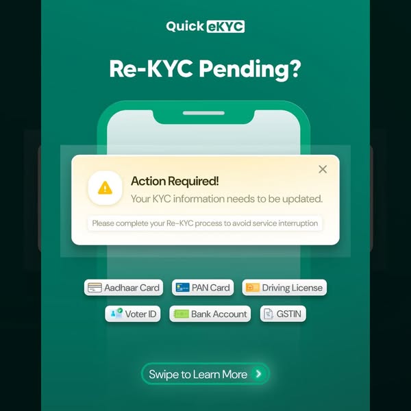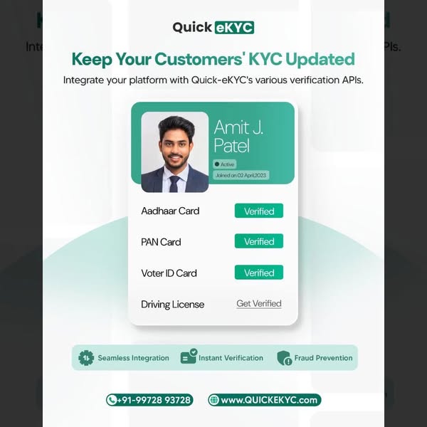 💡 Building a loan app, recharge portal, CRM, or Android software? Before scaling, make sure your users are 100% real & verified — because fake users = real losses. With QuickeKYC, you don’t just get APIs — you get a developer-first KYC engine trusted by 500+ Indian platforms. 🌐 Our eKYC API Suite includes: ✅ Aadhaar OTP Verification (fast, UIDAI-compliant) ✅ PAN Verification (instant name match with NSDL data) ✅ Bank Account Validation (account + IFSC + holder match) ✅ UPI ID Verification (check validity in real time) ✅ GSTIN Verification (auto-fetch mobile, email, firm data) ✅ DL, Passport, Voter ID API (govt ID checks in seconds) 🛠️ Built For: → Android Developers → SaaS Platforms → CRM/ERP Builders → Fintech Startups → Lending & EMI Apps → Recharge & Wallet Apps ✨ Why Developers Choose Us? ✔️ 30-min integration ✔️ Sandbox & live environment ✔️ Lightning-fast response speed ✔️ 99.99% uptime ✔️ WhatsApp support with real humans ✔️ Affordable, wallet-based pricing 🎯 Build apps that users trust. Let us verify while you focus on growth. 📩 DM “QUICKEKYC” for free test API access 📞 WhatsApp: 99728 93728 🌐