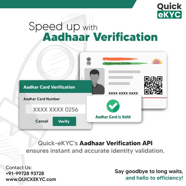 QuickeKYC: The Fastest & Most Secure eKYC API for Aadhaar, PAN & GST Verification! 🚀 In today's digital world, businesses need fast, secure, and compliant KYC solutions to verify identities, prevent fraud, and onboard customers seamlessly. QuickeKYC provides an AI-powered, real-time eKYC API for Aadhaar, PAN, GST, UPI, and Bank Account verification, ensuring instant authentication with 100% accuracy. Why Businesses Trust QuickeKYC? ✅ Real-Time Verification – Instantly authenticate Aadhaar, PAN, GST & UPI. ✅ AI-Powered Fraud Prevention – Detect fake identities before they impact your business. ✅ Seamless API Integration – Developer-friendly APIs for fast implementation. ✅ Compliance-Ready & Secure – Fully meets RBI, SEBI & AML/KYC regulations. ✅ Scalable for All Businesses – Works for startups, enterprises & fintech platforms. Industries That Use QuickeKYC: ✔️ Fintech & Banking – Secure transactions with fraud-proof KYC. ✔️ NBFCs & Loan Providers – Authenticate users before processing loans. ✔️ E-Commerce & Marketplaces – Verify merchants & customers instantly. ✔️ Cryptocurrency & Wallets – Strengthen compliance & reduce risks. ✔️ Logistics & Transportation – Validate drivers and vehicle details. ✔️ Insurance & Lending – Ensure identity verification for fraud-free policies. 🚀 QuickeKYC helps businesses eliminate manual verifications, automate compliance, and scale securely. 📞 Call Us Now: +91-99728 93728 🌐 Visit: