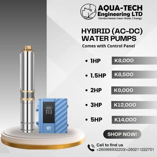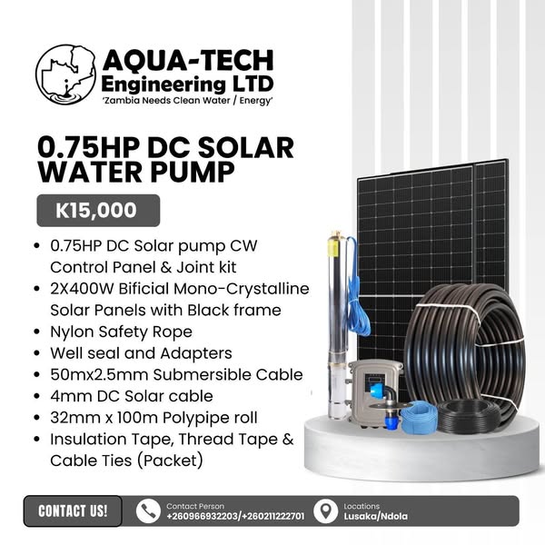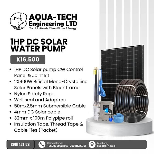 搜索关键词 Aqua-Tech Zambia, Solar Water Pumps, Irrigation Systems, Zambia Farming, Green Energy, Sustainable Solutions, Water Storage, Power Solutions, Free Consultation, Hybrid Water Pumps优势 Reliable water and power solutions,Sustainable solutions,Reduced fuel costs,Increased yields,Free consultation and quotation