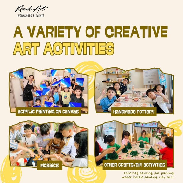 搜索关键词 children's day art, art workshops vietnam, kids art activities, educational events for children, creative workshops for schools, family friendly events, team building activities, kloud art workshops, art education services, international children's day优势 Creative and engaging art activities,Tailor-made programs,Full-service support (planning, materials, setup, cleanup),Flexible locations