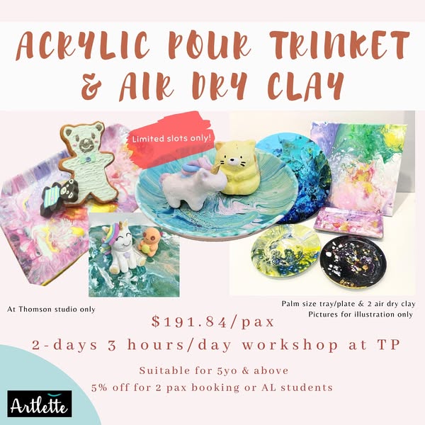 Mar holiday workshops available for booking at all Artlette branches - Upper Thomson, Ang Mo Kio and Chai Chee (Bedok)
