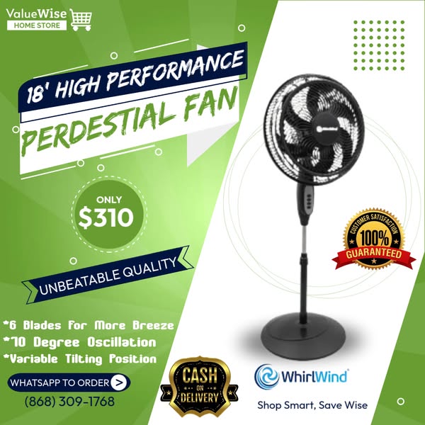 🌀 Whirlpool 18” Pedestal Fan w/ 6 Blades – $310