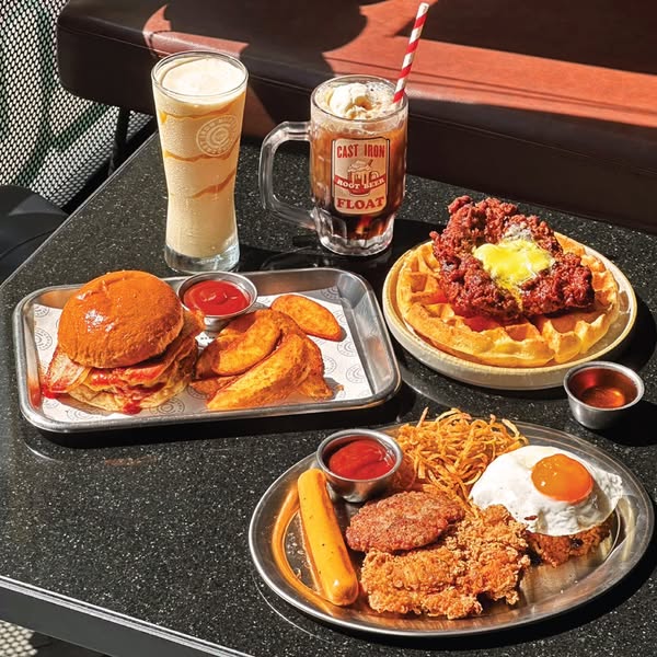 ไม่ว่าจะเป็นเมนูอย่าง 🧇 Nashville Chicken Waffle ที่ทางร้านได้นำไก่ทอดชิ้นโตไปจุ่มซอสน้ำมันพริกสไตล์ Nashville มาแบบฉ่ำๆ ซึ่งเมื่อทานคู่กับ Waffle ที่หอมเนย และ ราดด้วย Maple Syrup ทำให้ได้รสชาติทั้ง เผ็ด หวาน มัน เข้ากันอย่างลงตัว